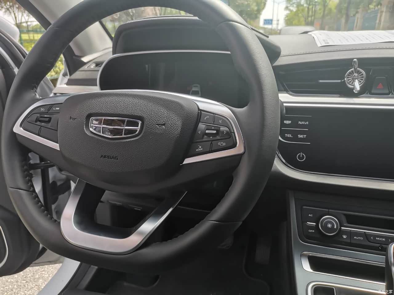 最满意就是空间,实用家用型轿车,这款帝豪比较好就是空间大,就是老婆坐副驾驶没镜子有点不太适应,但是这个价格我买了还带天窗的,挺好看的,后尾箱也挺大,装得下挺多东西,后尾箱里面东西比较杂乱就没拍了
