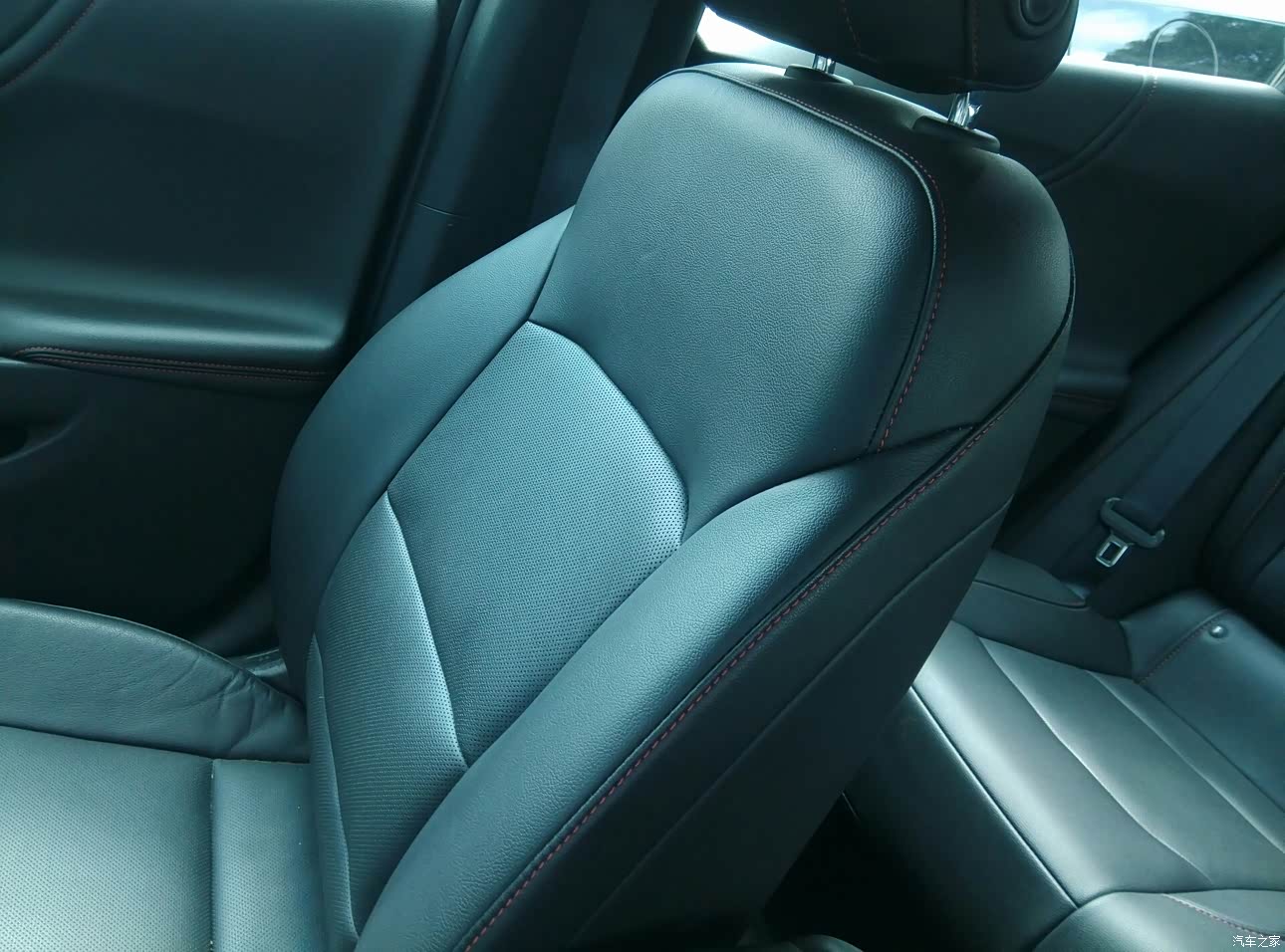座椅包裹性一般,黑色真皮没有打孔,后排似乎有点滑,前排椅背两侧有弧度还好,后排中间没有头枕不太舒服,不知道为什么。