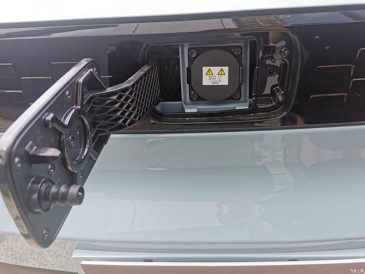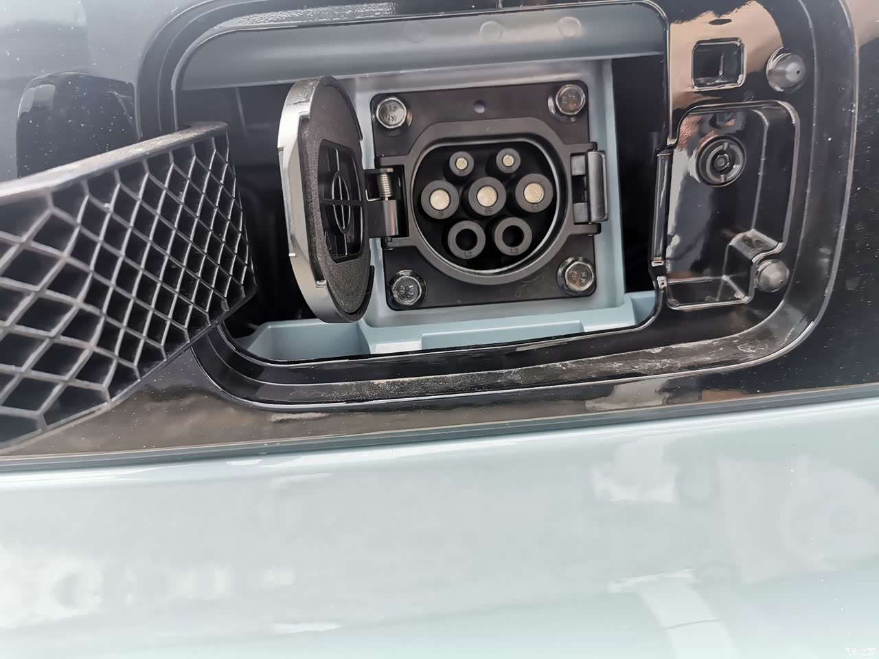 充电三连拍,五菱宏光MINI的充电接口在车头那个五菱LOGO后面,充电时只要按一下LOGO的右上方就能打开,一般我都是在晚上充电,充满格的电大概能跑3-4天,