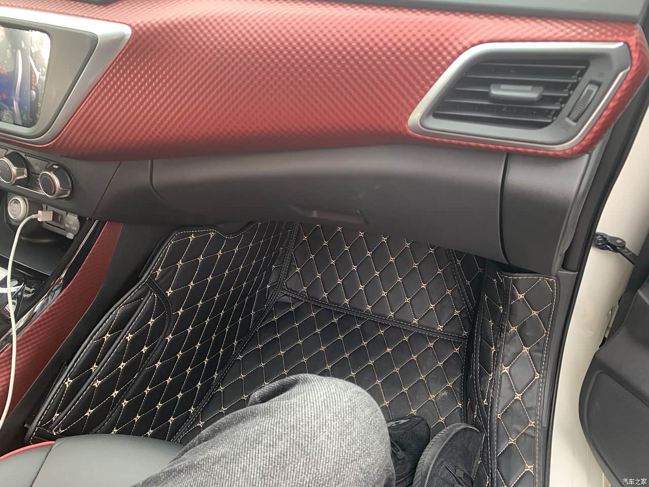 内饰设计也是偏运动的,一个多功能方向盘还带音响控制,座椅是环抱式的,内饰里面有红色和黑色的晶钻纹理,看起也是很有运动感,我选的红色的,让内饰看起来不那么单调,加上我也是女孩子嘛,还是喜欢里面炫彩一点呀。一个8英寸的中控屏,里面可以智能语音控制,远程实时监测,车载全时导航,车载WF等,功能还是多,都还很实用。其他就没有什么很突出的设计,红色的内饰还是增加了一点色彩。
