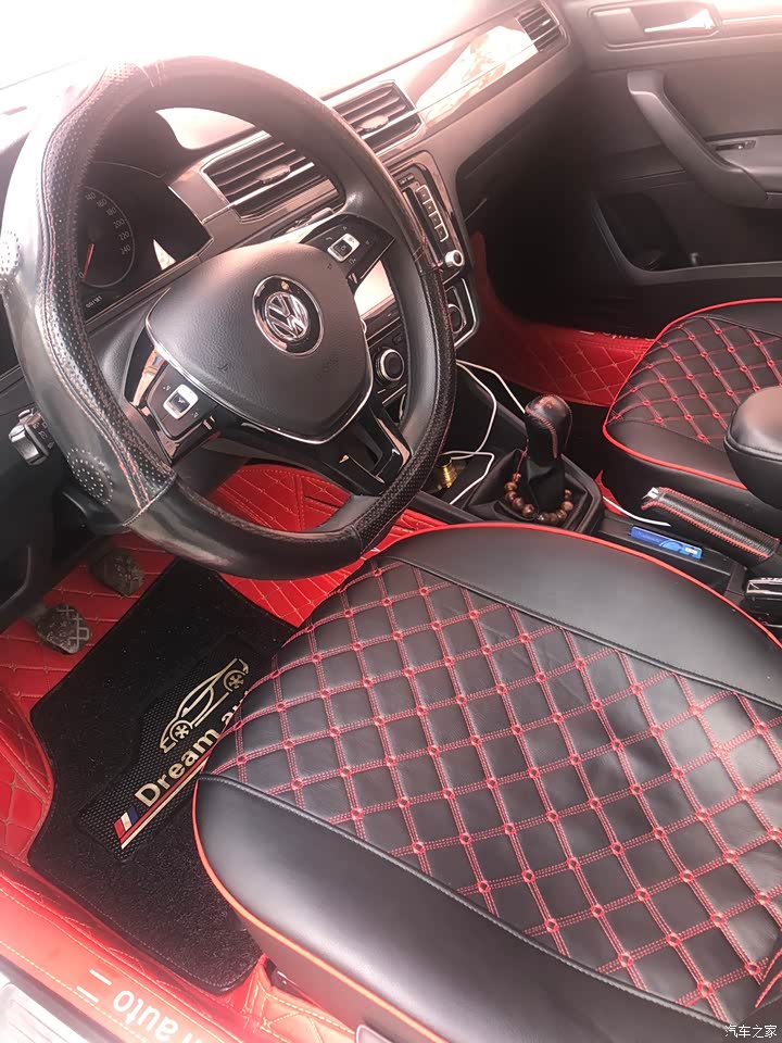 我这款内饰媲美20多万的车 像方向盘中控带的装饰条 以及内饰设计的简单大气 有点小高端的品质 座套跟脚垫是我在 网上买的 空调按钮换了个圆的