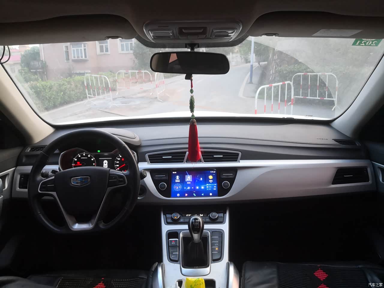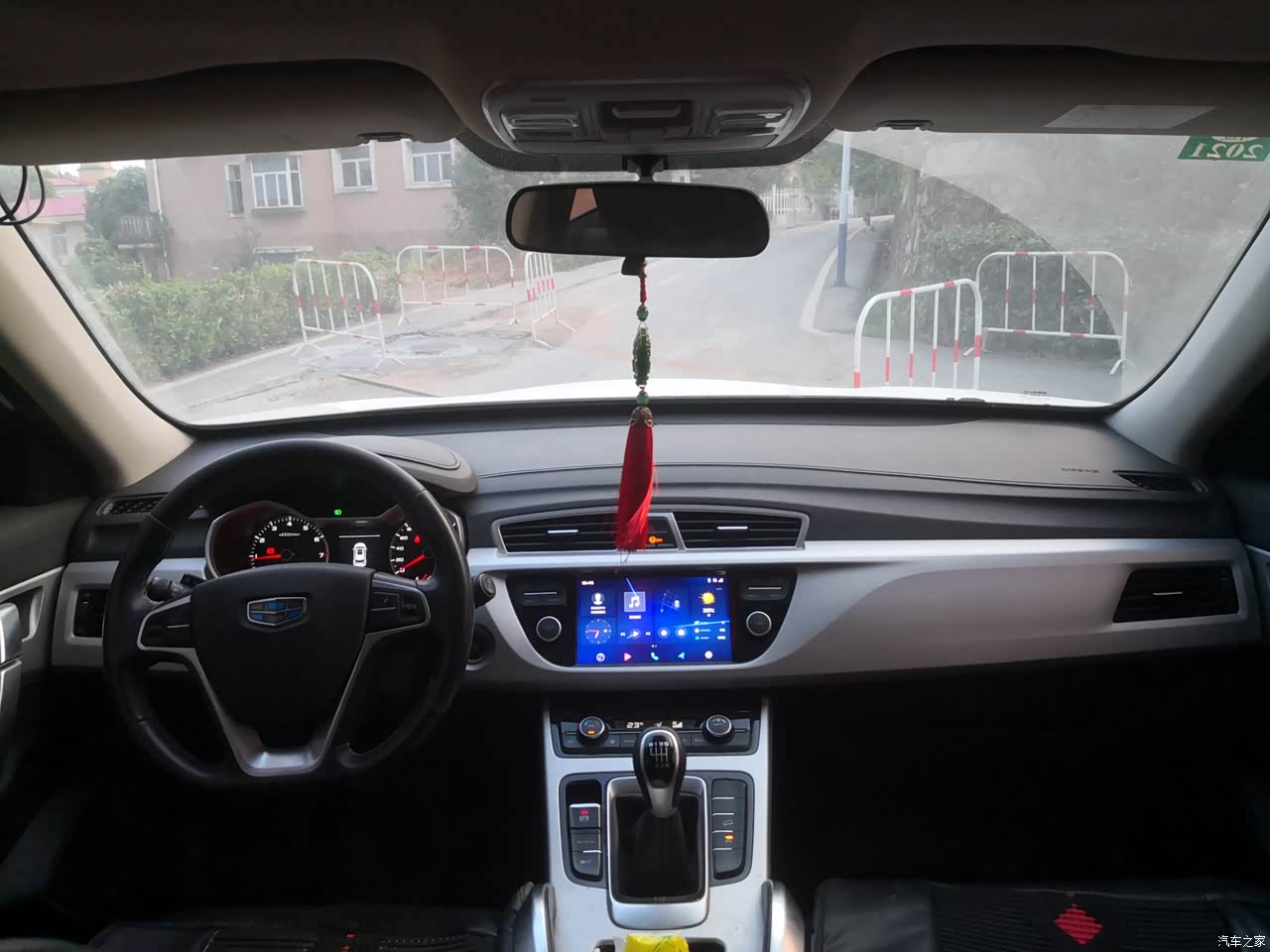 博越这款车的内饰是全黑色内饰,中控区搭配了些金属漆面,软塑材质台面,皮质座椅,高清仪表,超大多媒体触摸显示屏,支持语音,中控和后排座椅中间都设计了水杯架,而且后排的可收起,很方便;开了这么久,早已不知道新车是个啥味道了😅
