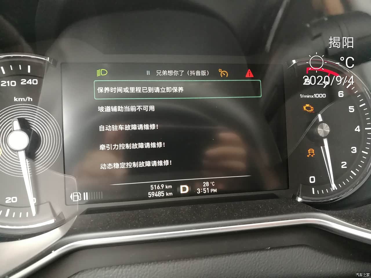 前面有一遍文章,是新车到2020-3月前的质量问题,提到的波箱异响,7月份在4S店更换了离合器上盖,和什么轴承,2020-9-4号波箱又出故障,这次故障可以说是对人身安全有影响了。 因小孩开学,8-29号带小孩回老家,2020-9-2号下午在老家去镇上给小孩买课本,到店门口停下,先出现发动机排放故障灯,发现后熄火重启后其他许多故障灯都亮了,太多了无法全写出来,看图就可以,想着家离镇上不远先开回去,走不到百米下坡路段松油门,再踩油门时D档变成空档一样空转了车不走了,打电话给村里的乡亲大哥在镇上汽修的,一说情况他就知道是双离合波箱的问题,叫我熄火停一会等冷却下来重启可能会好,大太阳下在路边等啊等,重启真的不空转了,开到他店里去用电脑检测,问题是波箱3-5档出的问题,看图,偶发性的,先帮我删除了故障码,开回去没有问题,9-3号早上开出去也没有问题,一直停到9月4号下午3点准备回深圳,一上车启动就开始出故障码了,一样挂D档,R档都没有用空转,想着或许跟那天一样停一会就会好,就这样走不到几百米就停一次,再启动又好了,不敢上高速怕在高速上出问题,果真一松油门再踩油门就不行了,走走停停的,走到汽修那里看,大哥还是说那个问题,要修波箱,我对他说试一下跟前天一样清除故障码看下能不能开到深圳再去4S店修,他说不建议,这样很危险,车已经出问题,要返回深圳结果这样,揭阳老家的4S店觉得没有深圳这边技术好,打电话给厂家投诉了,说只能拖车到附近4S店维修,整个揭阳市就一家4S店,去年农历12月27晚上拖过去修了一次,本来上次的问题就是曲轴传感器的问题,车很打着,而且走着走着降速后自动熄火了,这明明就是传感器的问题,拖去维修说是油路堵住了,请问新车不到2年用什么油能堵住堵到这种情况,还要收我大几百清洗费用?修好回来就出现了波箱异响,再到今年7月初在深圳4S店维修波箱,再到这次2020-9-4号又得修,到现在发帖时间,老家那边9-5号一天了还没有给我答复是什么问题要怎么维修,等明天再问看看。