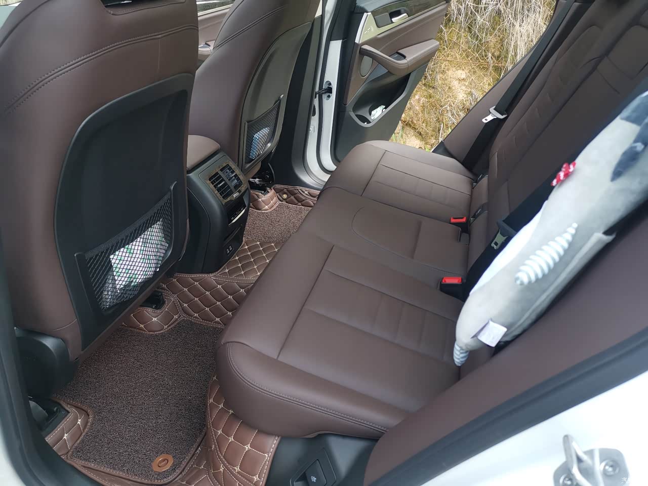 空间设计亮点?暂时没有找到什么亮点,后排可以调节角度这个很多车也有,往后倒加上头枕,老婆大人讲真的很舒服,不过倒下去之后跟边上行程一个高差的坎,比较硬,头碰到了疼,这个有办法,见下图。 空间利用率真不如小日本。CDX车身尺寸小那么多(宽度不小),但乘坐空间并不比X3小,储物设计得更科学更好用,当然后备箱是小很多,但真正因为后备箱不够用而带来的用车麻烦又有几次呢?