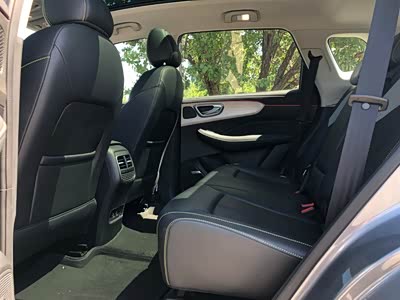 紧凑型的SUV空间方面一般都不需要担心,我身高176,坐在RX5 PLUS的后排,腿部空间能有两拳左右,很宽敞。中间的地板是平整的,可以让三个人同时坐在后面,中间的人也不会觉得难受。车顶的全景天窗面积很大,车里的视野非常开阔。