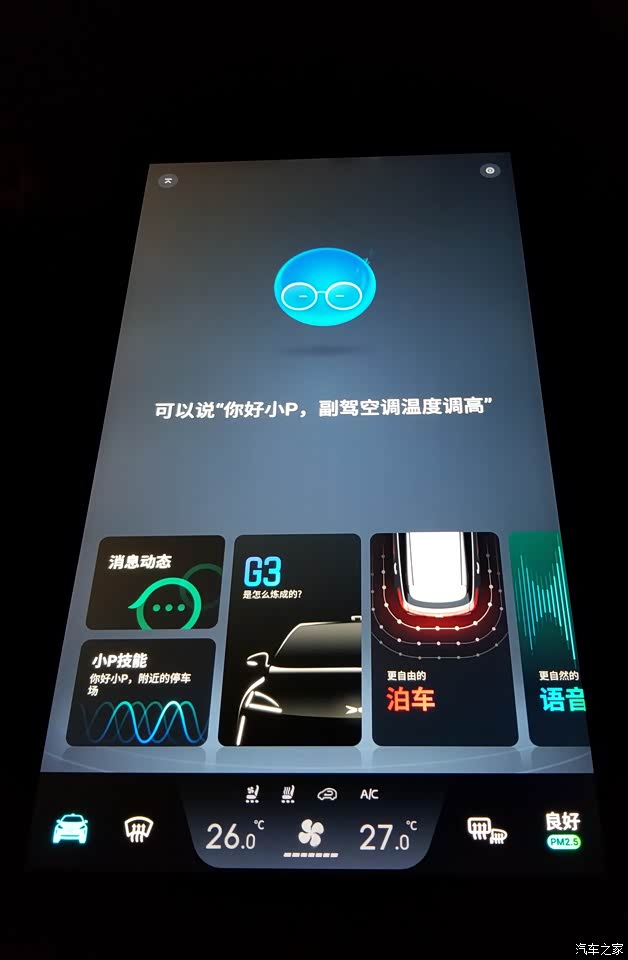 自带PM2.5过滤系统,十几秒就可以呼吸新鲜空气了,可语音,可直接点,就在大屏右下角~