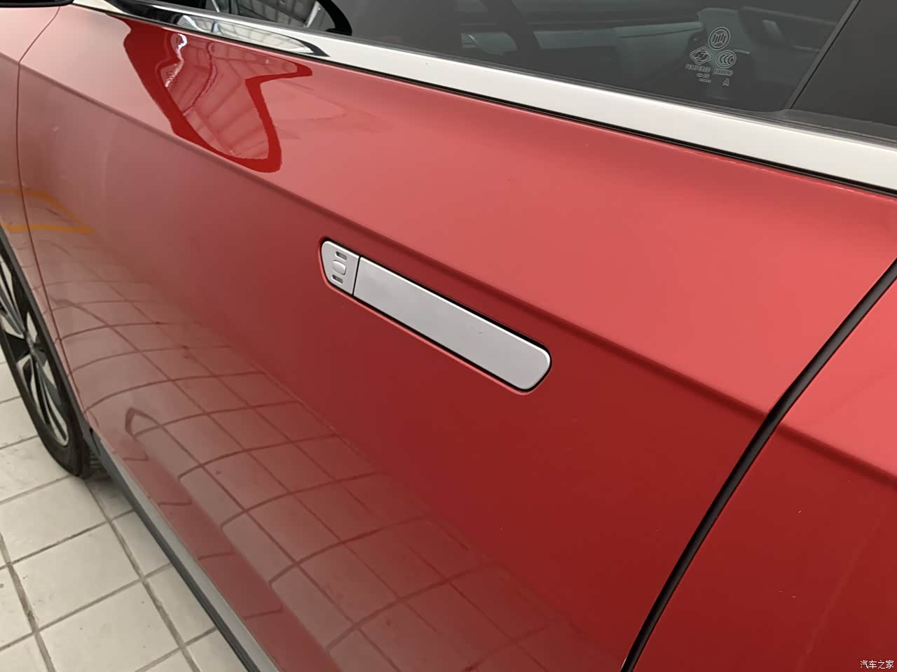 外观赞的,led灯的logo设计新颖,每根logo线条还能代表充电时候的电量,看起来方便,很有科技感。方形LED日行灯,设计也很时尚。车门把手是会弹出的,收进去时候整车就很那种一体化,没有突兀感。后面的贯穿式尾灯,也让车子看上去很神气。总体来说,科技与时尚感共存,又十分运动感。
