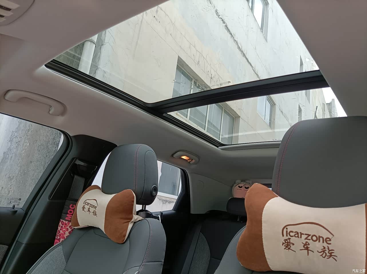内饰第一眼觉得它的中控台非常高,挡风玻璃也小,车顶的全景天窗在秋冬季节真的是非常好用,将天空搬进车内,白天阳光沐浴进来很温暖,晚上城市霓虹灯照进里边档次满满的, 功能不多刚好够用,实体按键很清脆也容易找,中控屏幕微微倾斜,看着舒服,里边储物格的设计也非常人性化,布座椅也有大惊艳,它的纹路和做工棒,完全没有廉价感,夏天坐起来很透气。