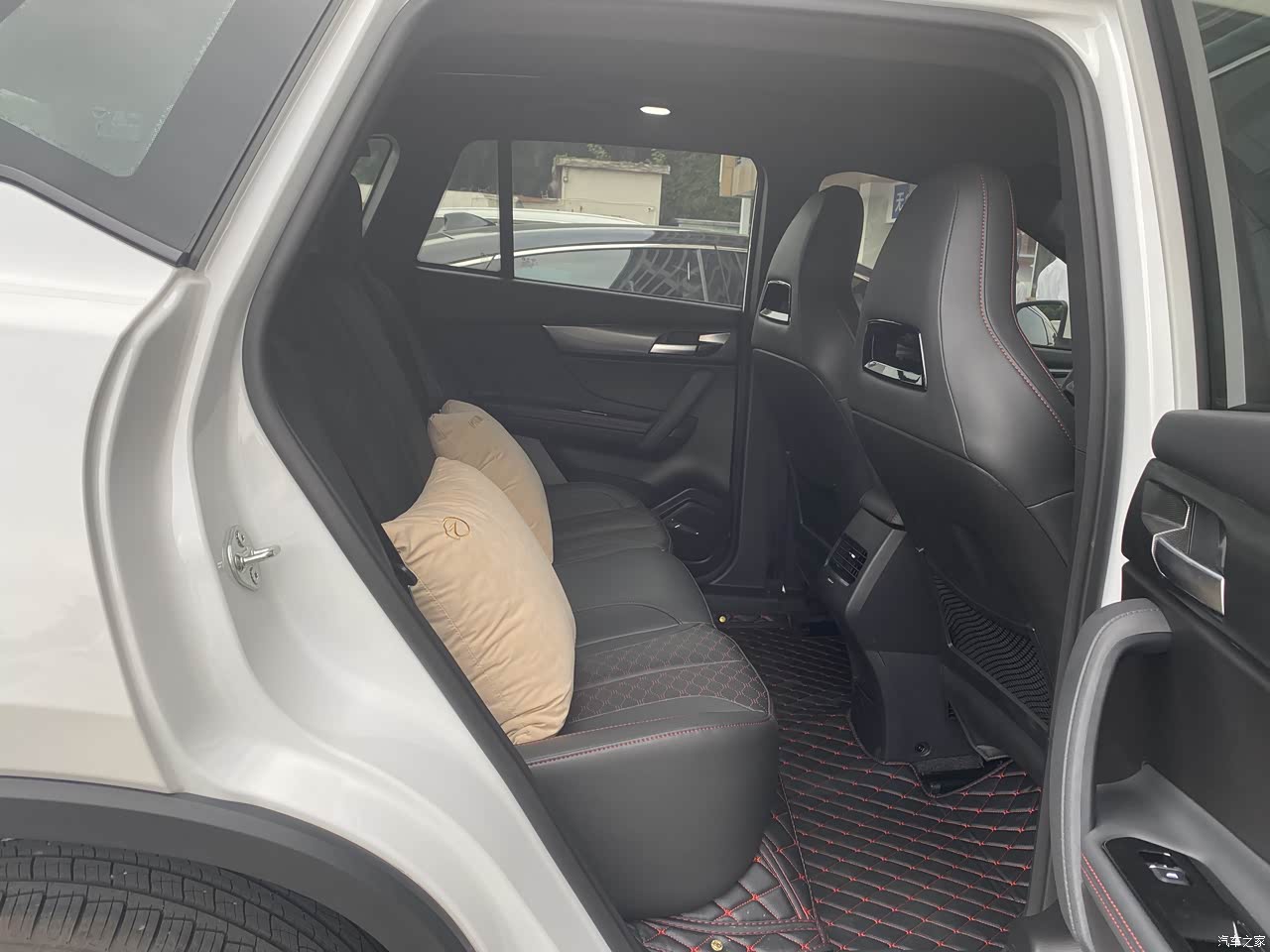 真皮座椅还是挺不错的,坐着舒服,不会硬邦邦的感觉,噪音相比其他车也还好,比较安静,海马8S有一脚踢电动尾门以及跳舞尾灯的功能,逛街买完东西找车的时候只需 要按下锁键,车辆就会发出“滴”声响,以及尾门的车灯会跳舞,方便寻车,走近车前脚 下轻轻一踢就可以开门了,拎再多东西都不用腾出手去开门。