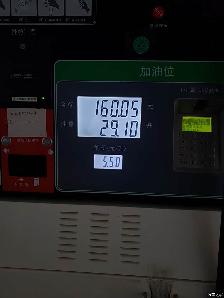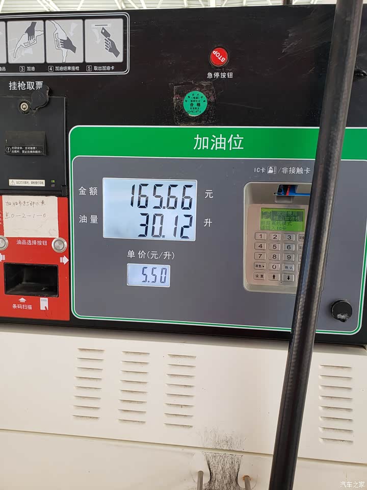加了三次油,新车加满油,在中石油加了180元,油价5.50元每升。加油32.7L,提车16.1km,到加油站2km,行驶到308公里加油时再加油160元,29.1L,油耗10.03升,已经很高了。行驶到664公里时第三次加油30.12L,油价5.5元每升,金额165.66元。第二阶段油耗8.5升。总里程平均油耗9.2升。呈下降趋势。