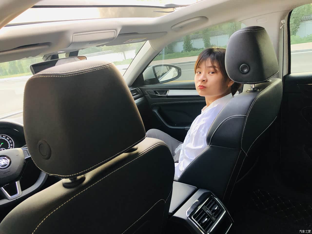 看丹丹的表情你就知道舒适性很OK了 真皮打孔座椅 包裹性可以 而且还有腰部支撑还有腰部支撑还有腰部支撑重要的事情说三遍!