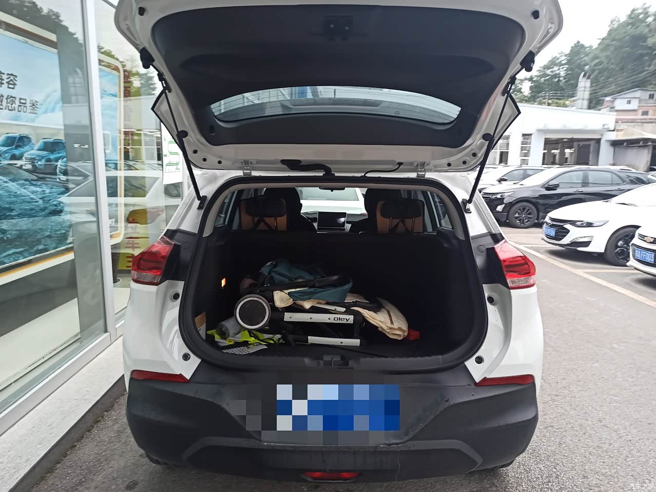 后备箱空间可以,平时也就出门放个婴儿车,还是比较大的这种婴儿车,去逛逛超市买买菜简直是大材小用了,出去玩的话放两三个行李箱也没得问题,这个没什么挑剔的。