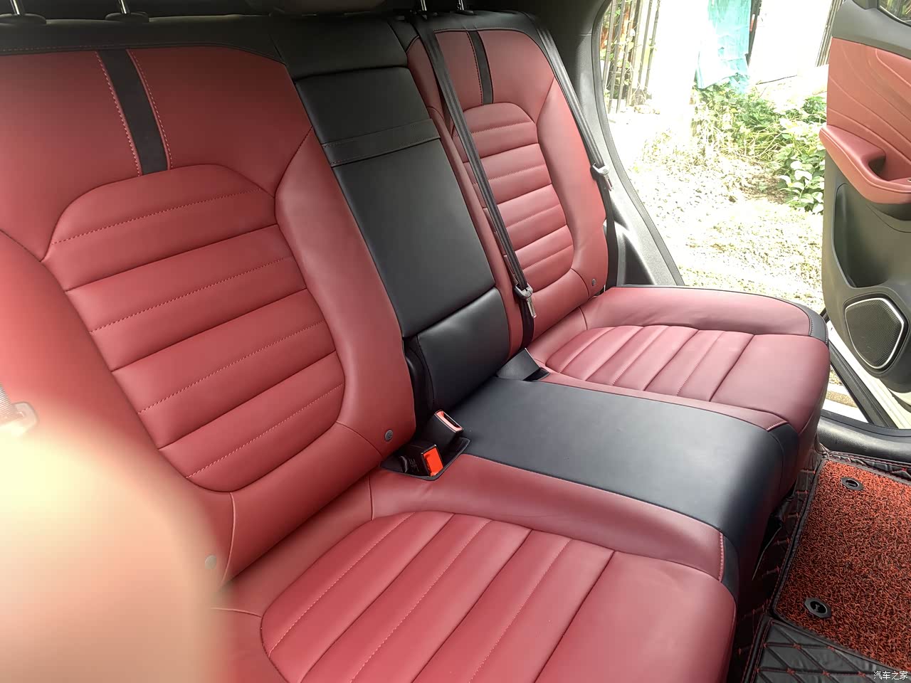 左右两侧类似奔驰的圆形“炮弹筒”空调出风口,中间是方的。个人感觉“天圆地方”结合的蛮好,但也有同事乘坐时提出觉得不和谐,这个见仁见智,有“强迫症”的兄弟三思。后座空调出风口两个,常规配置。