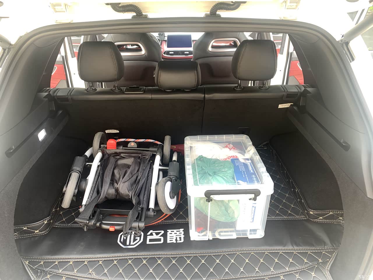 主副驾驶的空间不用说,基本是个车都不会让人感觉太局促不够用。家庭用车,在空间上的主要关注点还是后座和后备箱。后座乘坐空间中等,基本上175CM坐后排的话(前排调整到合适舒服位置),膝盖位置仍有一拳三指空间,头顶空间没关注过。只是座椅的设计结构对后排三人乘坐不太友好(详见附图),建议整车最多四人出行为佳。后备箱整体尺寸感觉偏小,不知是否是我有垫后备箱垫的原因,放置一个小的手推车和收纳盒就占据了绝大部分后备箱空间,不过对我来说已经足够用了。