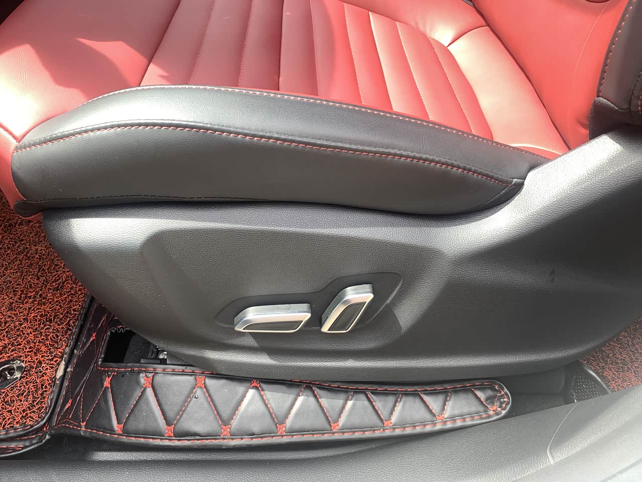 一体式真皮运动座椅,缝线很讲究,带腰托调节的。