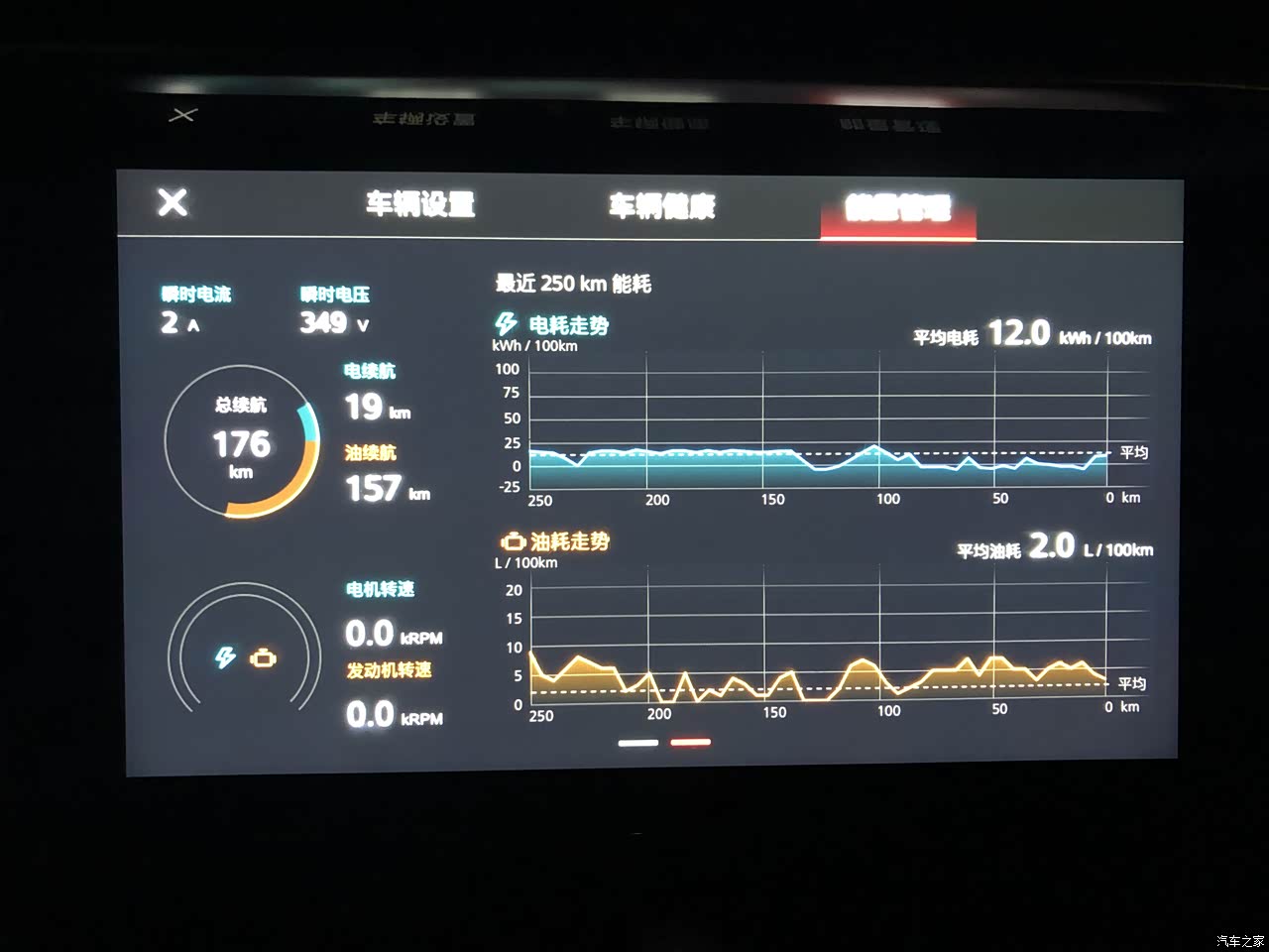 确实省油,最近表显250km平均油耗2L/100km,平均电耗12KW/100km,就像前面说的,8000km一张1000块的油卡没用完,1000块的电卡剩60多,综合算下来一公里2毛4,还想咋地。。