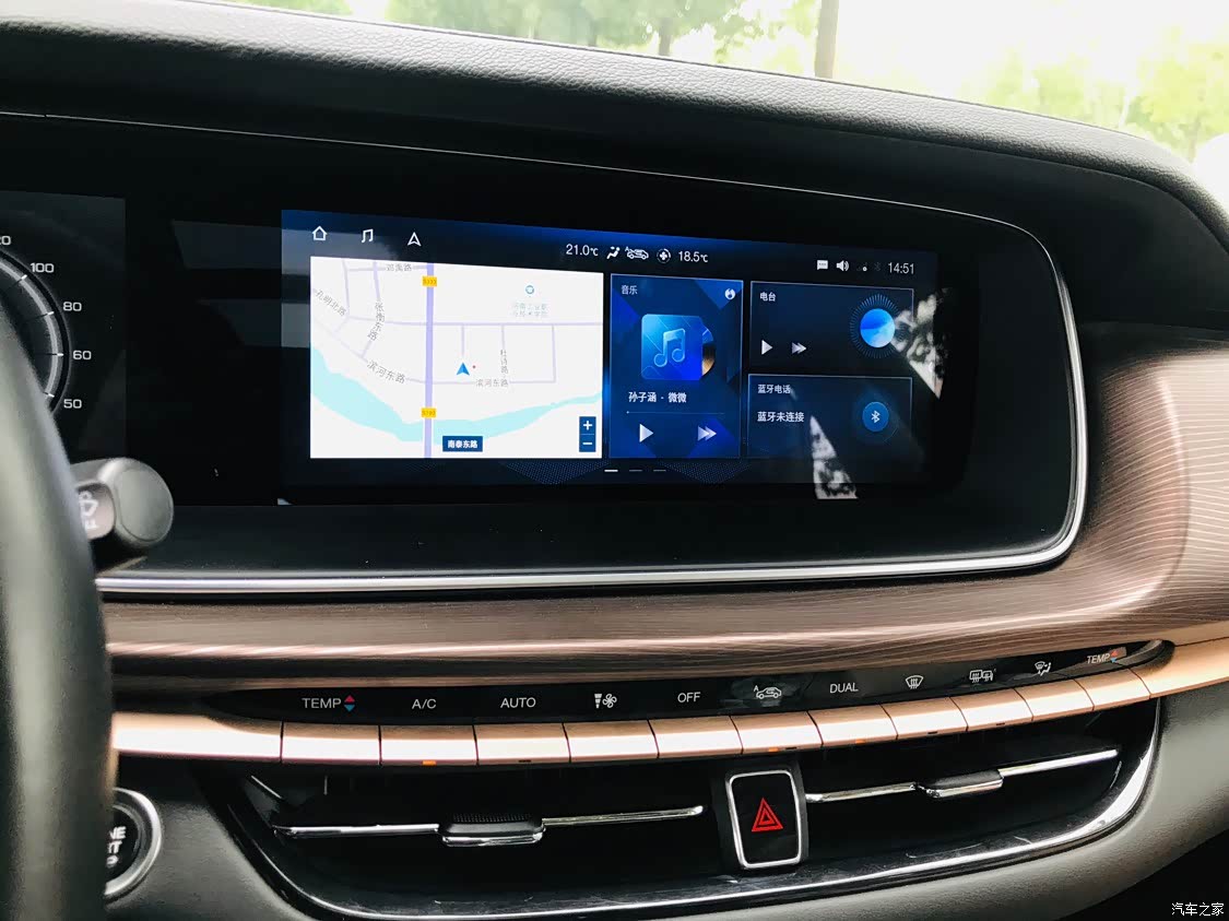 内饰设计也是简单大方,大尺寸的中控看起来大气十足,也很上档次,用着也舒服,座椅配色一般吧,但是胜在真皮材质坐着舒服。