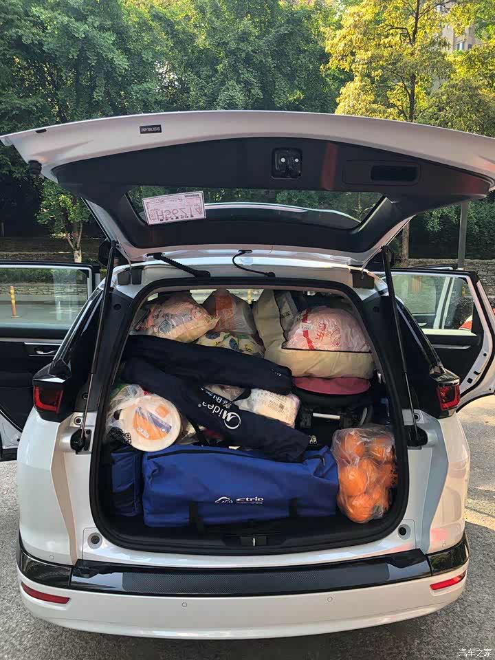 五一和朋友几家人去河边烧烤,吃的、烧烤用具、帐篷、沙滩椅等把这后备箱装得满满的,确实能装。