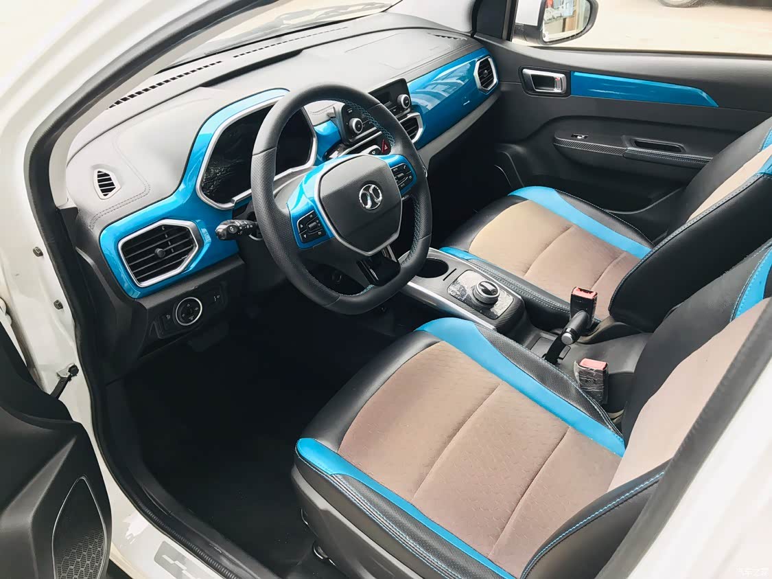 全系标配俩安全气囊,冷暖空调(带独立显示面板)机舱式手刹电子旋钮式换挡,科技感十足,黑蓝相间的内饰风格,充满着年轻活力,车内全部采用国内大品牌零部件,安全可靠,无异响 异味发出