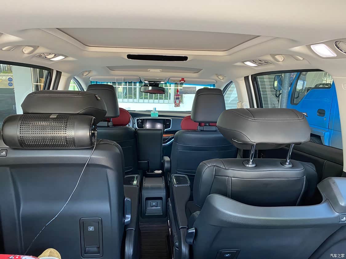 这车为前排座椅考虑有点少了,居然连座椅记忆都没有,电动可调节的东西也不多,就前后和角度,腰托也没有。中间排还不错,有电动调节和腿托,三排不坐人还可以退到最后平躺。但肩托这个设计非常不好,不是电动而且按下去就直接弹起,经常不小心造成误操作,也没有角度可调,基本是废的。另外新车异味挺大的,提车前做了净化,然后又先后做了两次3m的去味,一堆炭包和净化器还是味道不小。
