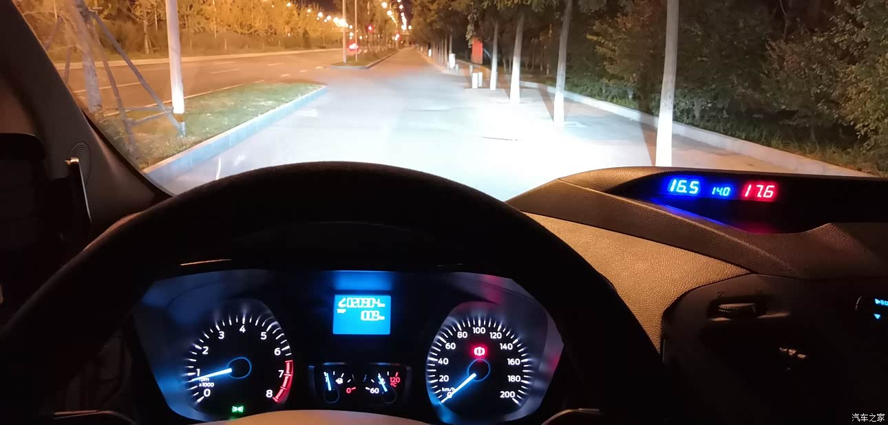 氙气大灯在夜晚行车明亮,路面一览无余,驾车很舒适。