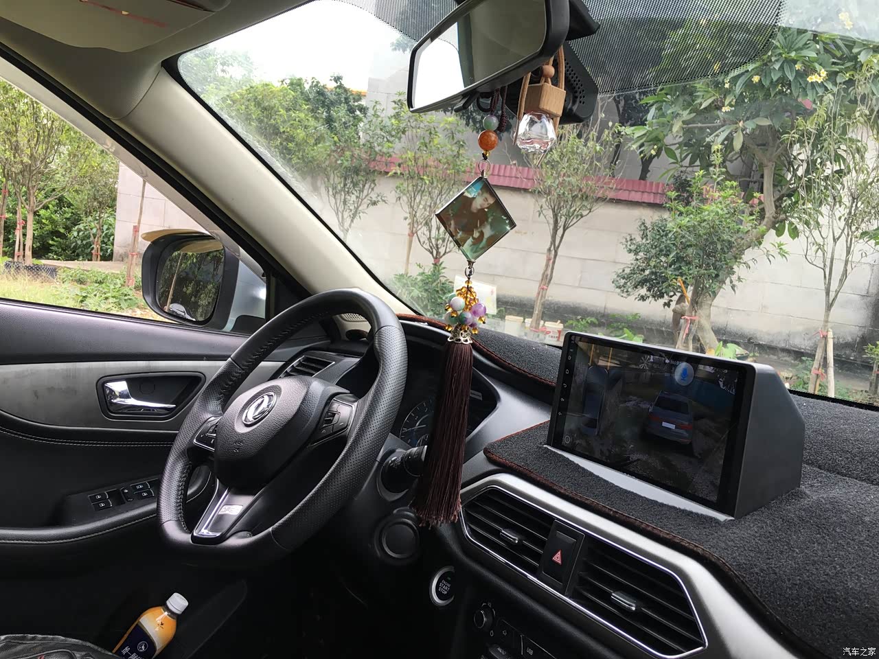 风光S560的内饰较为简约,我自己加装了360度全景泊车系统,是老婆要求的,因为她很害怕停车,所以我的中控屏形状是有少少不同,加了个包围,风光S560的中控台很简洁时尚,7寸悬浮式高清显示屏,像素清晰,倒车时画面切换快,而且仪表台还满满的科技感,内是纯黑色的加了银色饰条点缀,简单,大方,时尚,越看越喜欢!