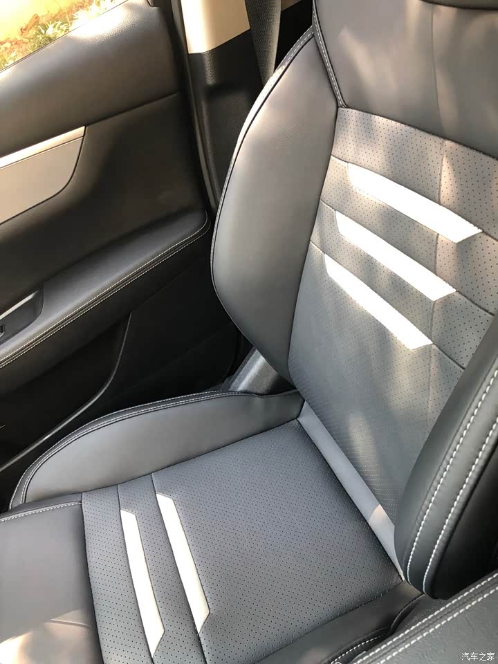 内饰座椅选用灰白配色,颜值高,真皮座椅舒适度也没话说,