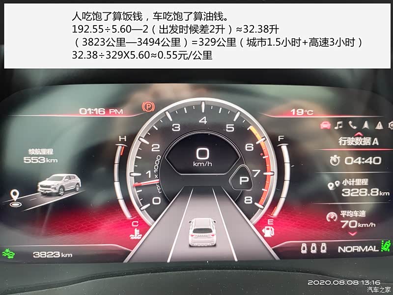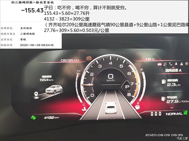 三次2000公里长途综合路况实测,按5.6元油价,每公里油费在0.505-0.459元之间,实测。