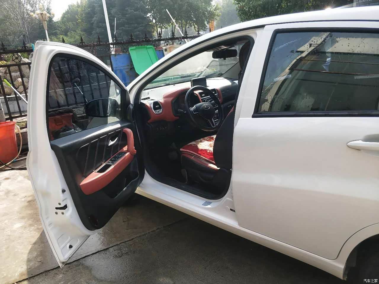 外观也没得说,小巧玲珑的。珍珠白,漆面很好。大灯像鹰眼一样十分的动感时尚。
