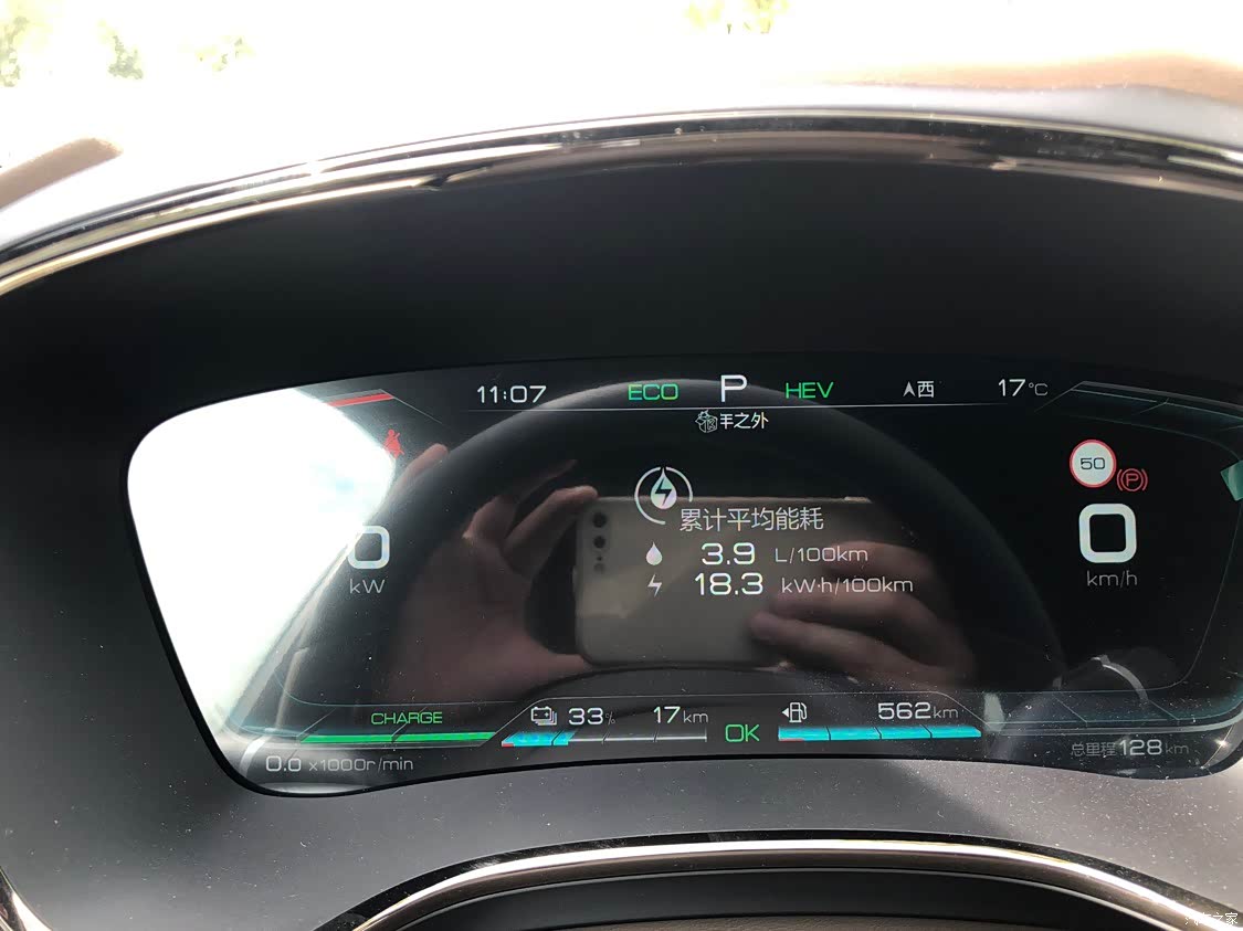 能耗相当满意,提车时候把油箱加满了,现在看表上还是满的,基本都是用电,一毛钱一公里,不香吗???