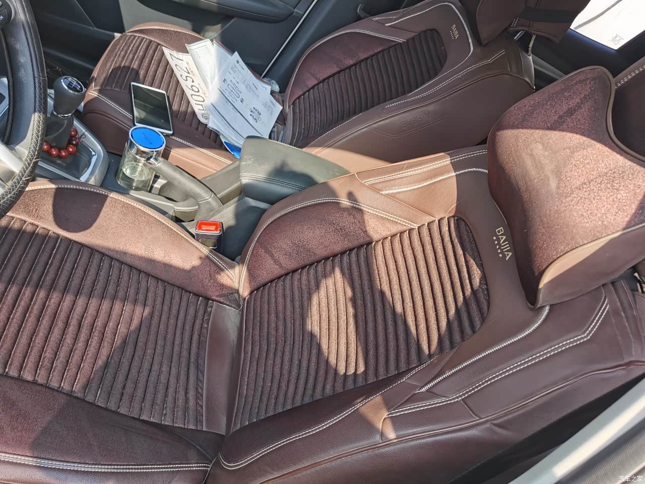 内饰的整体风格一般吧,虽有软包,但是还是有一些塑料的质感,而且挺硬的还,摸起来不是特别的舒服,全景天窗确实是挺好的,采光也好了,就是刷车的时候,玻璃得洗老半天,疙疙瘩瘩的,一打开,头顶上那么脏,看着也不舒服,档位的地方,确实容易积灰,不擦,就会落上了!