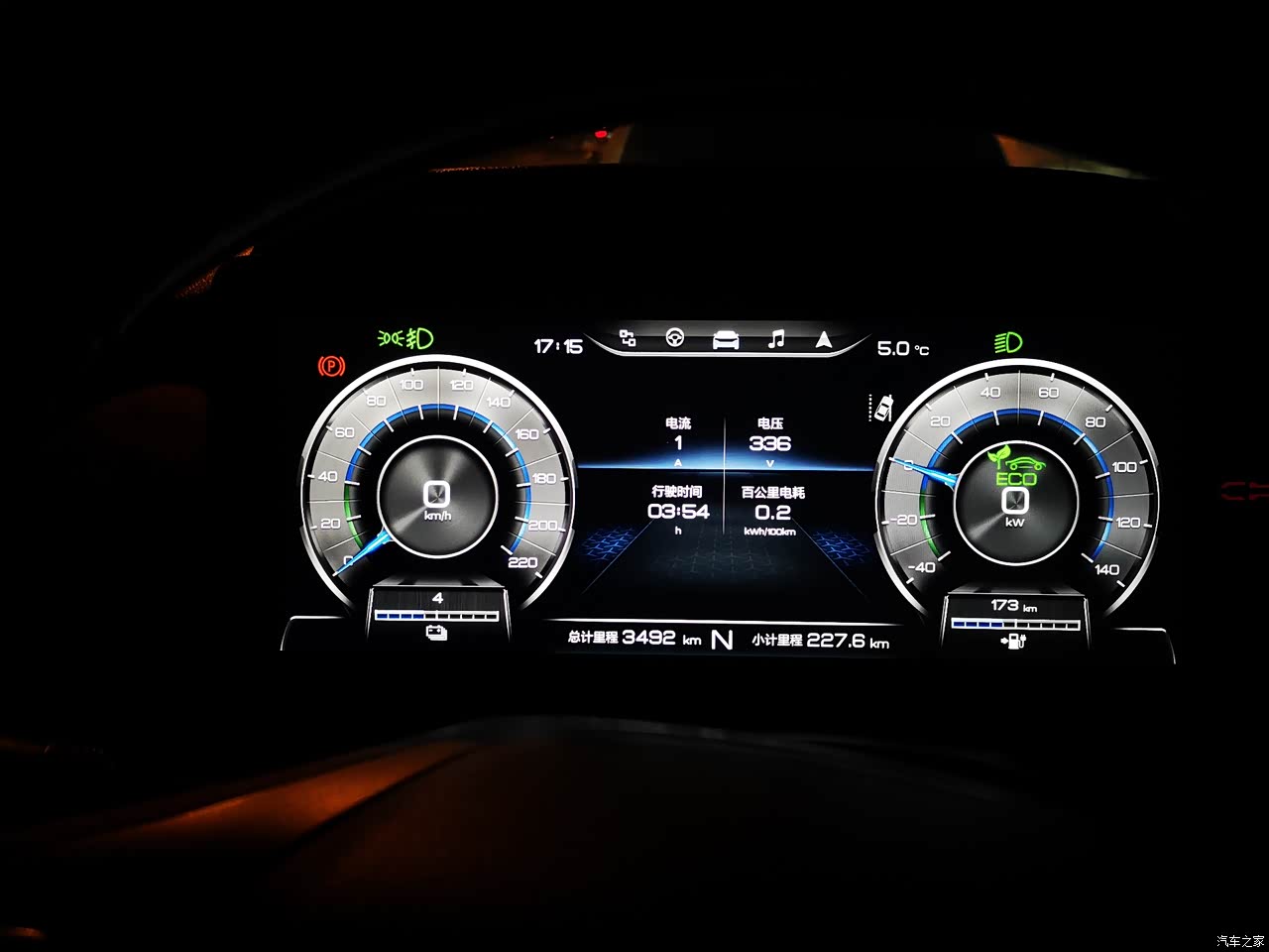 12月初出门续航469公里,回来剩余续航173公里小计里程227.6公里
