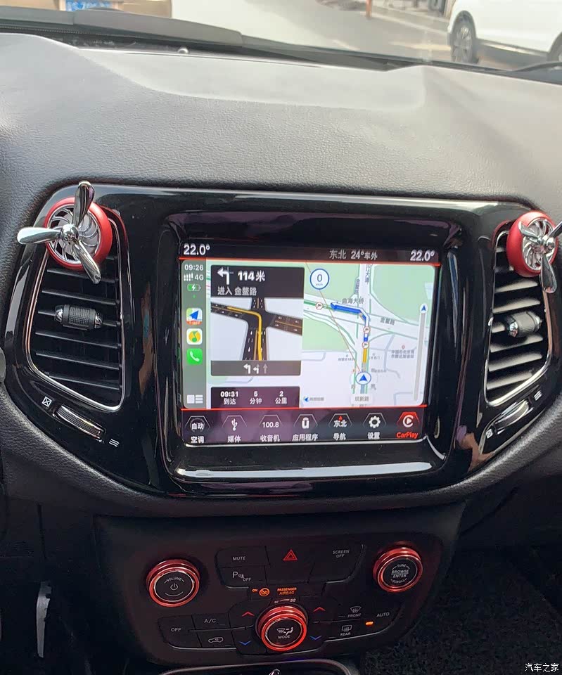 买了它,就不嫌弃它 不行的就花钱微改 图片是换了吉普原厂通用的松子carplay屏 在加了一个无线carplay转接口告别有线连接 hhh