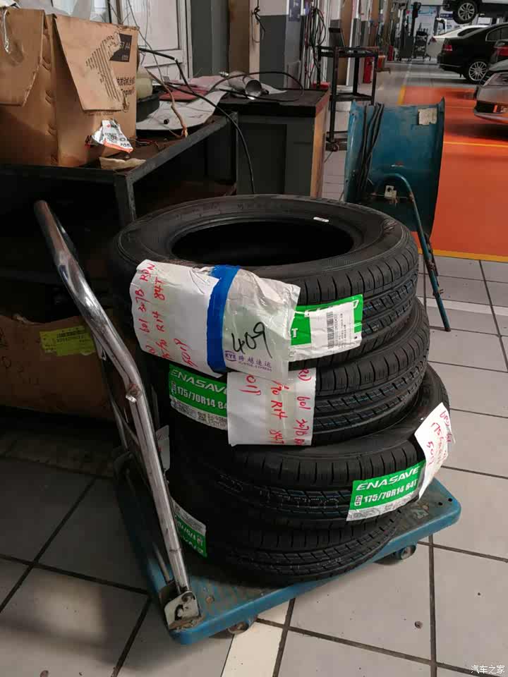 更换轮胎,可能更换早了一点,开车的师傅说再跑1万公里完全可以