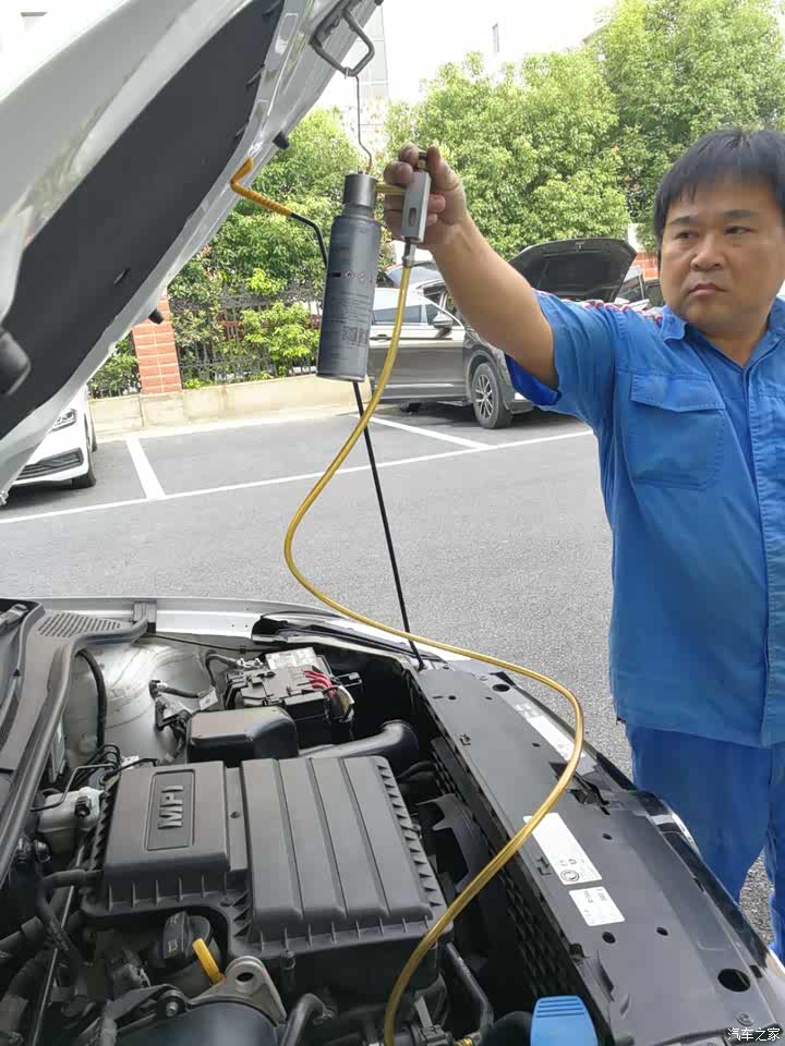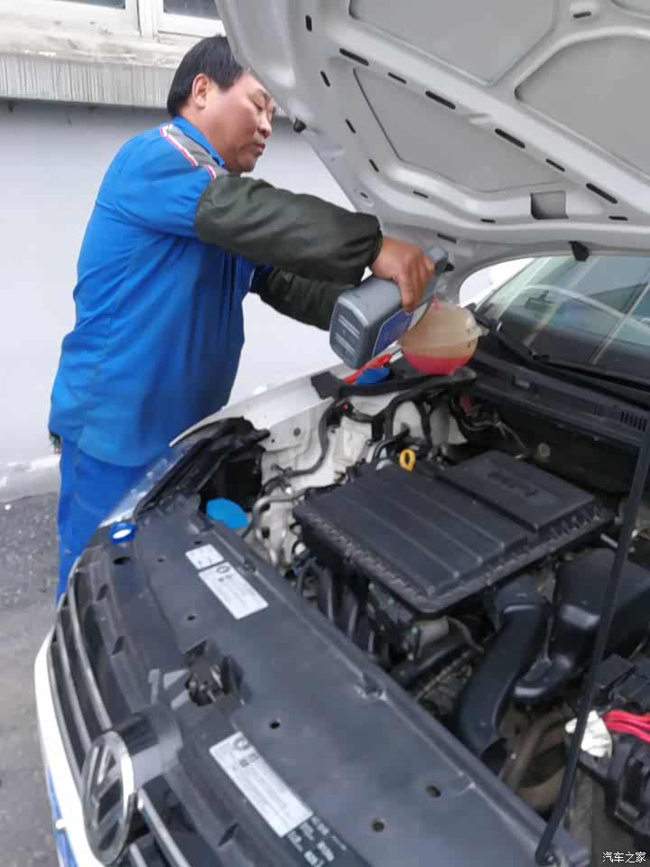 更换冷却液。冷却液一直没有少过,就是颜色有点发黑,依照保养手册换的。