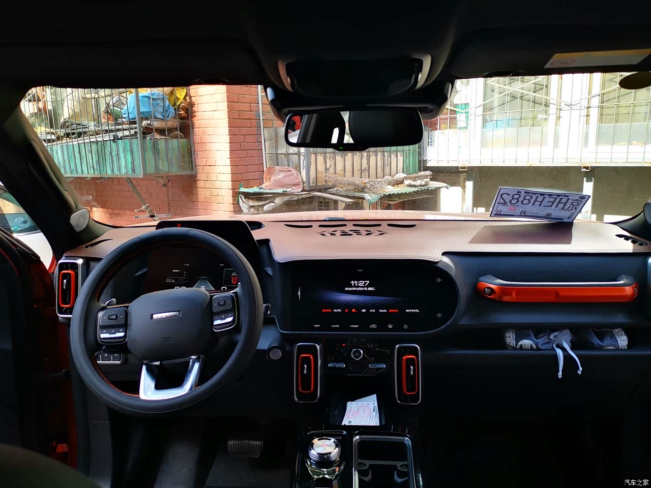 内饰风格我很喜欢,看着很硬派很大气。我是橙色狗,黑橙搭配包括车顶都是黑色。只有一个颜色的车内饰全是黑色的,其他车顶是白色的。
