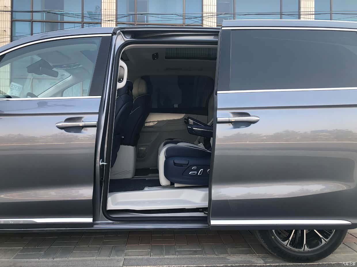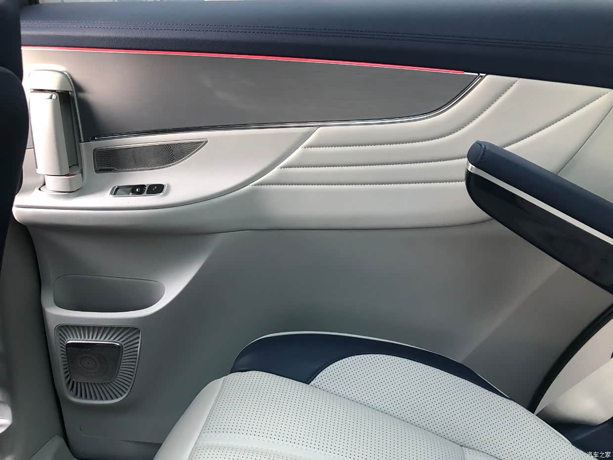 中控采用了一块悬浮式的屏幕,尺寸很大,整个布局上是典型的MPV风格,对于空间的利用率很高。用料方面也很上档次,有金属的面板、皮质的包裹,无论是视觉效果还是实际的触感上都很不错。