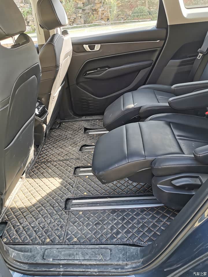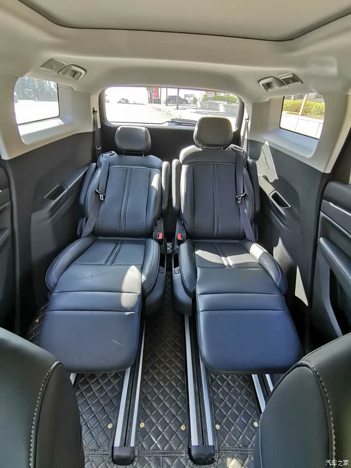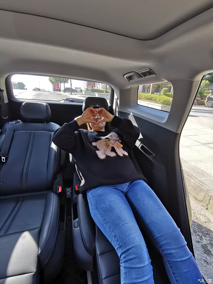 舒适性给五星好评绝对是真心的,车内的空间很大,第二排的座椅非常舒服,它是独立的座椅,而且座椅两边都带有扶手和脚托,再把座椅靠背放倒下去,那感觉真的很惬意,