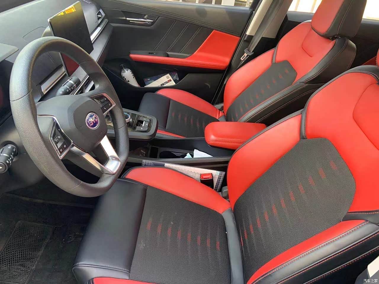 我的这款车是黑红双色的内饰设计,设计的很潮流。门把手,中控座椅都是黑红双色的,看上去有种豪华的感觉。值得值得一夸的还有那个悬浮的大屏,即可以上网又可以当手机用,非常方便。
