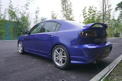 马三外形动感,短尾车身很有特点,加装尾翼非常运动,我这个车外观上主要就是右侧车门半斤过,不太看得出来,其他都完好,原厂做工还是比较整齐的,车漆原厂是金属漆,不显旧。但据说整体来看车辆做工没有10款以后南京厂的做工好。