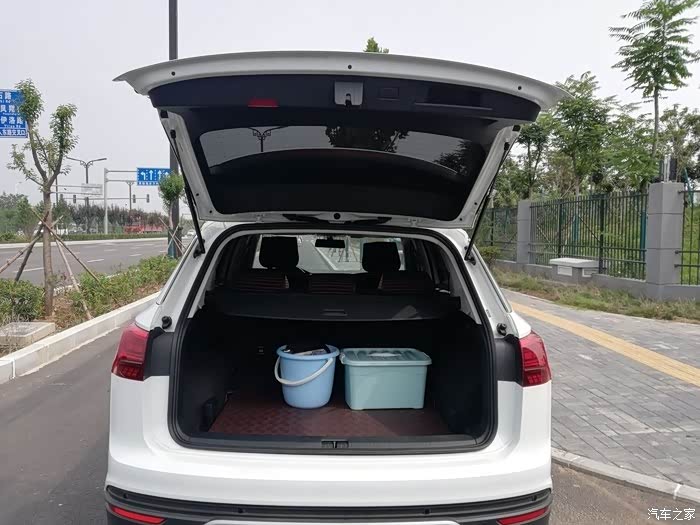 乘坐空间挺大的,我们一家5口坐车里不觉得拥挤。后备箱500L的容积相当大了,已经当做小仓库用了,孩子的儿童车,行李箱啥的都能放进去。