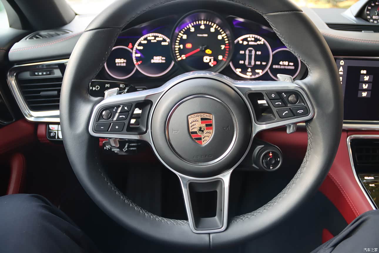内饰是彰显帕拉梅拉高贵奢华气质的重要元素吧,帕拉梅拉的内饰表现颇为耀眼,红色内饰的选择突出了这辆车的运动风格,三幅方向盘的握感很好,亮眼的保时捷车标更像是镶嵌在方向盘上的一件艺术品,再搭配上其独特的内饰,豪华的选配,给人一种绝对舒适的感觉。座椅的皮质也是也是没话说,不论从外观还是感受来说,都算的上是艺术。除此之外,帕拉梅拉的中控屏幕尺寸更是达到了12.3英寸,实用性非常强。