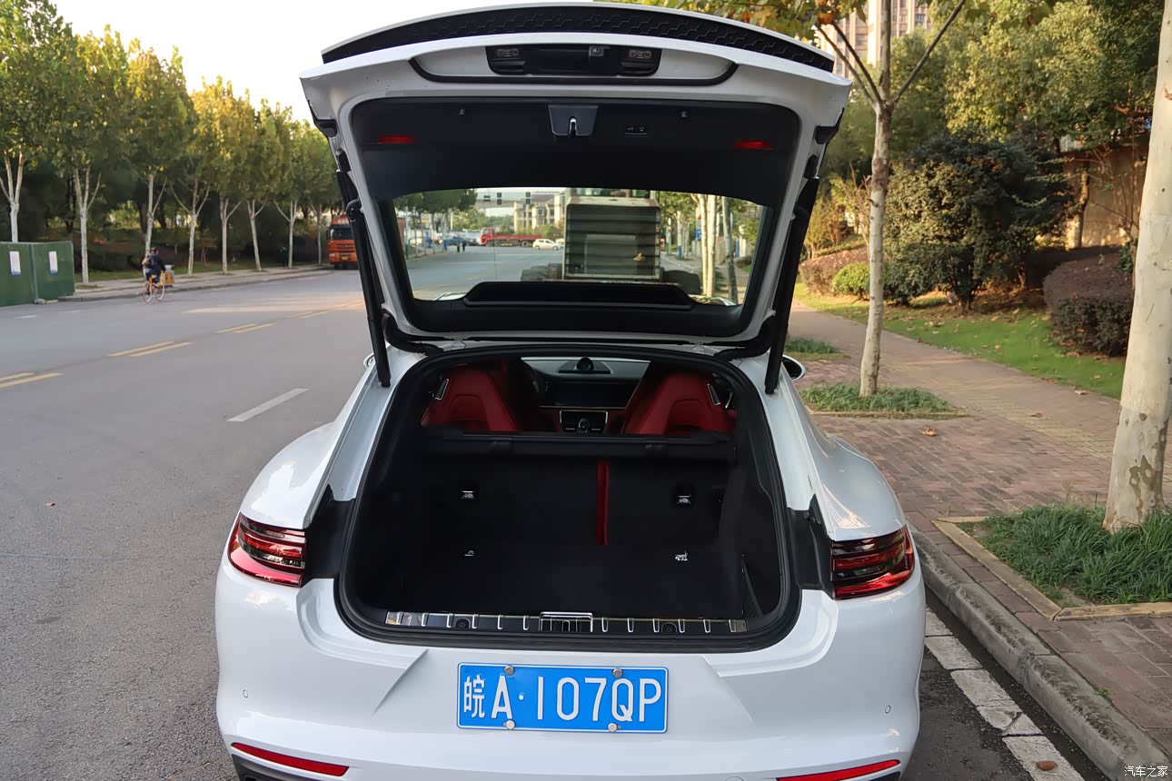 先谈谈前排空间吧,我身高一八零乘坐驾驶位自身感觉空间绰绰有余,当然这也是保时捷一贯的优点,除此之外,帕拉梅拉前排的储物空间不多,但放个茶杯带一些日常用品是完全可以的,可以满足正常的需求。再谈谈大家都比较关心的后排空间吧,没有购车前一直听其他车友说帕拉梅拉的后排空间是这款车型的缺点,但自我去4S店看车之后,其实并没有车友说的那么夸张。要知道保时捷panamera不仅延续了保时捷品牌运动跑车的设计特征,又要提供四门四座布置,一级后排座椅的宽裕乘坐空间是保时捷panamera必不可少的设计理念,因此在我4S店看车的时候特意留意了后排空间,吹毛求疵的话确不是很宽敞,像一些身形健硕的人坐在后排可能就是会有些许为难,不过正常坐四个人空间还是显得很充裕的。最后后备箱空间就不多说了吧,放个行李箱之类的东西都是可以接受的。