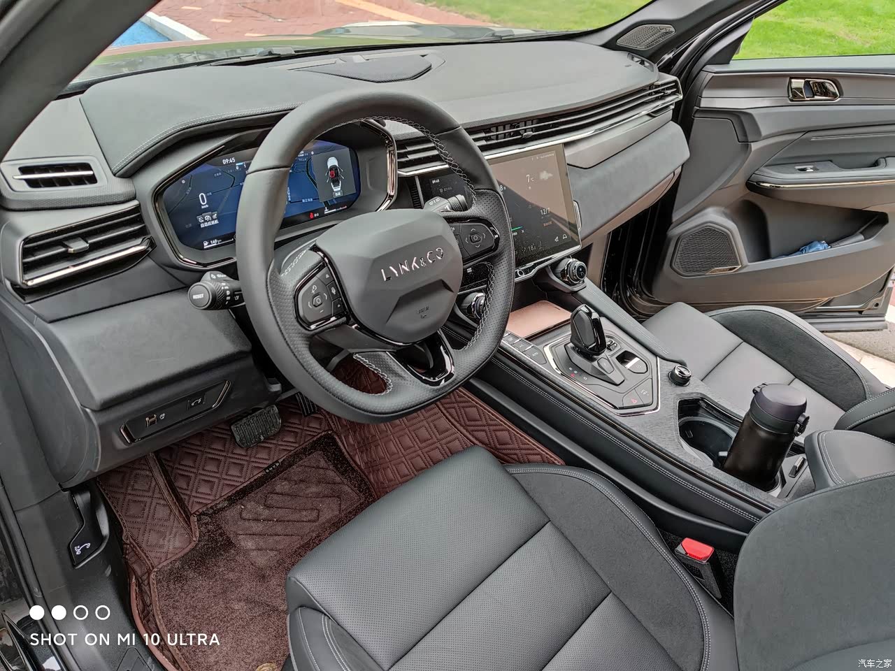动力非常澎湃,轻点油门可以随意超车,刹车性能也非常好,操控很精准,音响效果非常棒!内饰中控座椅做工很精致,车机反应很快,高德地图很好用,如果在外面回家时,正好遇到上下班高峰期路上较堵车的情况,那么这时只需对车机说一声“回家”,高德地图就会迅速打开在线地图,同时跳出多条回家的导航路线供我选择,而且是二块屏幕同步显示。感觉真爽啊!乘坐空间比大众途观、奥迪Q5都要大。车门很厚实,摸着车门就感觉领克非常安全!车子自带的5个摄像头非常高清,新车内完全没有异味!这点超赞!不像某些合资进口车,那么贵的车,可是车内的异味却非常大!前挡风玻璃和前排玻璃都是双层隔音玻璃,后排是单层隐私玻璃,所以隔音很好!电动尾箱门很好用,主驾驶有一个键可以自动开尾箱门,也可以自动关尾箱门,遥控车钥匙也可以控制自动开关尾箱门,我用脚扫一下也可以自动开关尾箱门,在尾箱下面有二个绿色的点,用脚扫时需要从左边的点扫到右边那个点就可以,确实很方便。尾箱内有一个夹层,放一些隐私物件很方便。车子驾驶在路上感觉很稳,我觉得和宝马5系一样的稳,方向盘也很轻,真皮方向盘的握感非常好!氛围灯给车内增加了很高档的感觉!真皮座椅非常舒适!灯光超亮,近光灯可以随着方向自动转。当车速低于30公里/小时,开转向灯时,中控屏会自动显示车子周围的影像,在R档倒车时,中控屏会自动显示高清360度影像,同时前门左右二个反光镜会自动往下调,增加驾驶安全感。由于是新车刚提回来才几天,我经常是发动车子在停车位上研究车内的各种功能,我把自动启停关了,所以这几天的油耗比较高,也在可接受的范围内。我觉得等我真正熟悉了车子,我相信领克01金球暗夜版的油耗也是很低的,特别是跑高速。主驾驶座椅支持通风和加热,副驾驶座椅支持加热,正好现在长沙的气温较低,我和妻子都试了,感觉挺舒服!仪表台手套箱和尾箱门支持密码锁,这确实值得加分!
