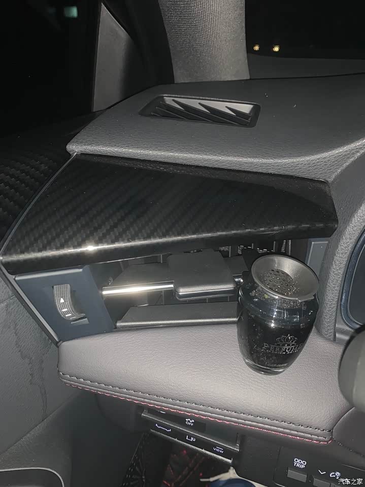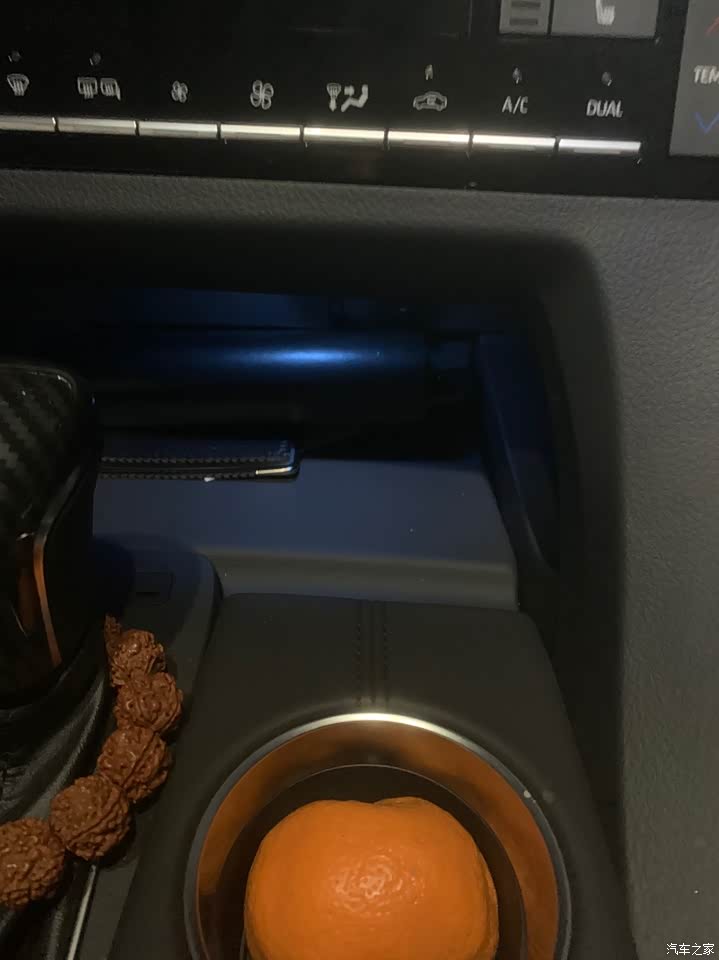 扶手箱很深,能放不少东西,两个杯座也够用。前档前面有一块很深的小平台,适合放驾驶证。眼镜盒。