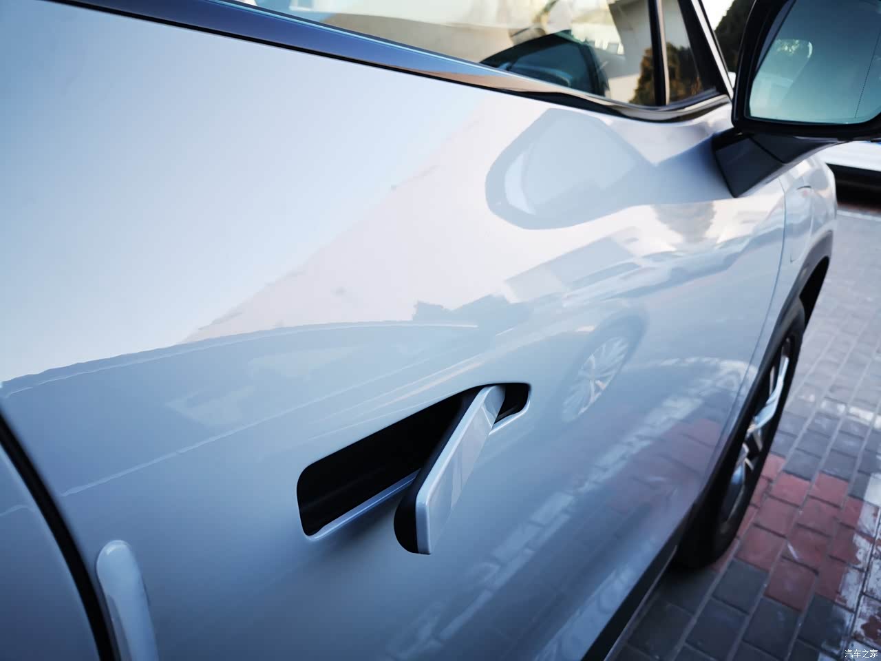 越来越多的车选择折叠门把手 但多数是整体缩回去 蔚来是翘起来一个角 很漂亮