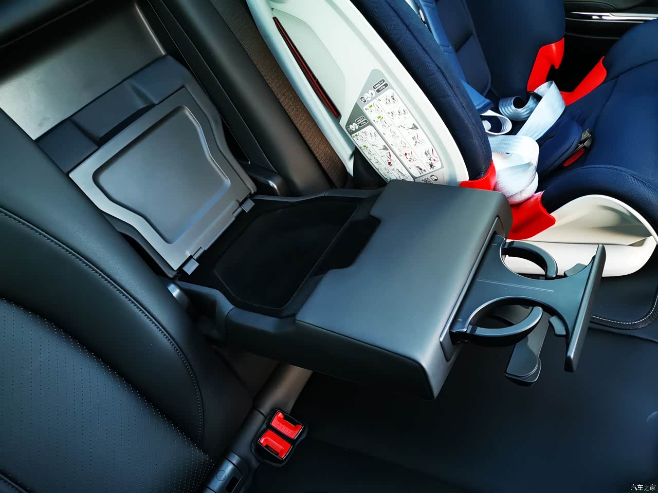 后排中央扶手台具有多功能 可平铺 亦可展开为水杯和储物架 好评
