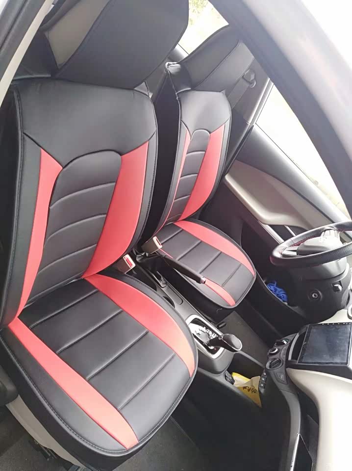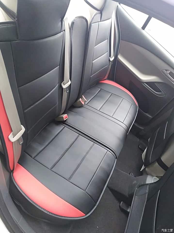 后排的座椅比较往后倾斜,整体来说座椅还是舒服的。但是唯一不足的是不是皮座椅,仿皮都不是,全是织物。我自己套了一个皮座椅,还挺好看的了,提升车的档次。