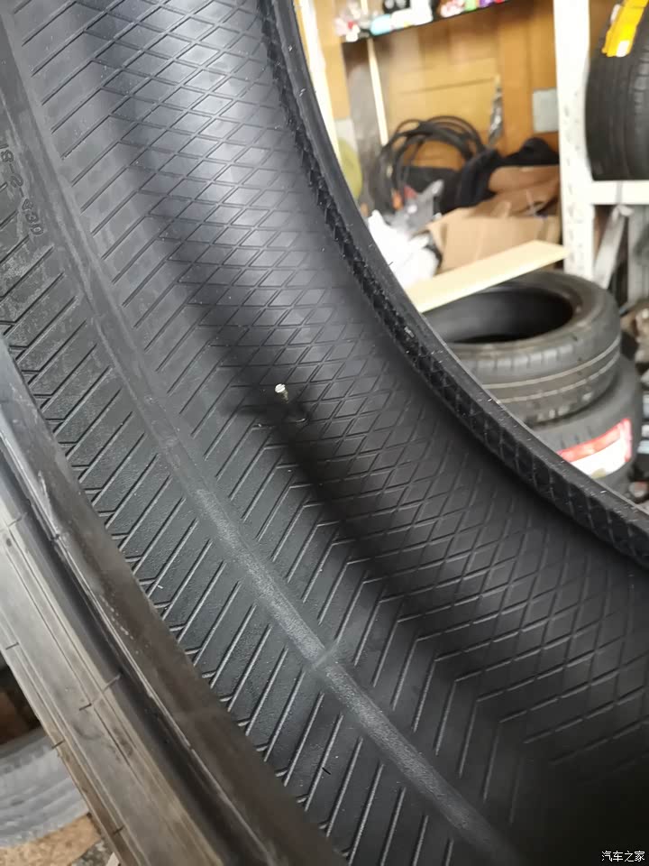 这个是前不久的一次,开着车突然仪表报警说我胎压偏低,停在路边也看不清楚,去汽修店一看真是把我吓了一跳