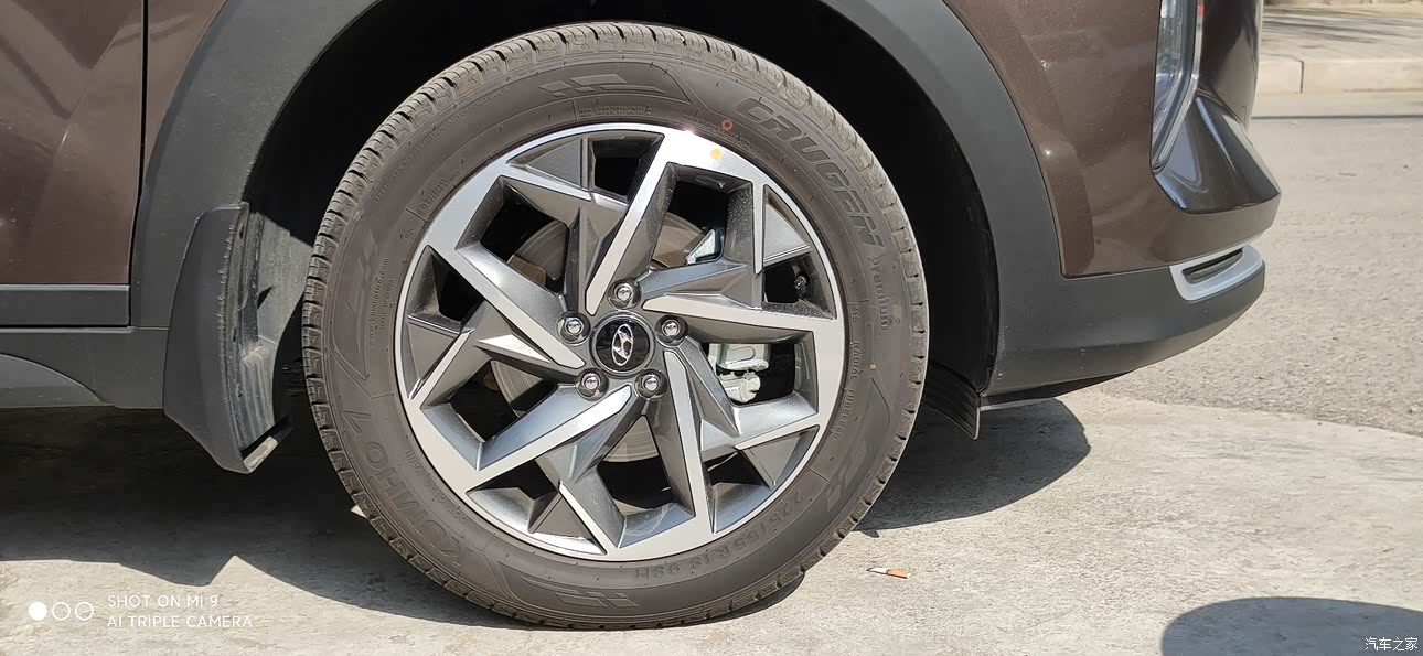 车轮比较繁复的设计,较有特色。这上面的小桔色的点是工厂为了对轮胎的重心。